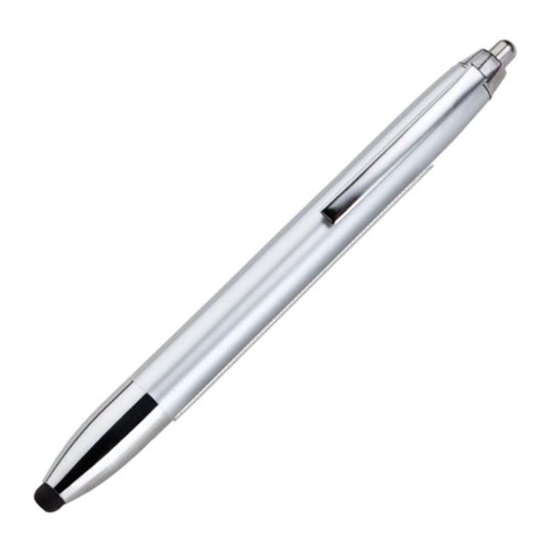 Ballpoint banner pen with stylus and chrome trims. Production in: 10-12 weeks.